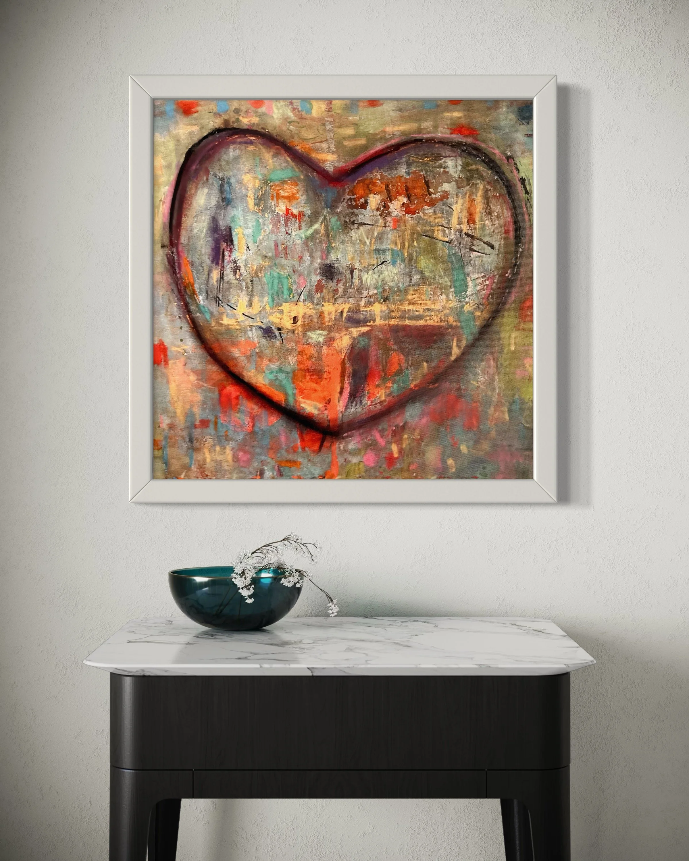 Sitting Pretty is a joyful portrait that glows with color and confidence. Set against a dark background, the central figure bursts with warmth and pattern; proud, beautiful, and unapologetically present.