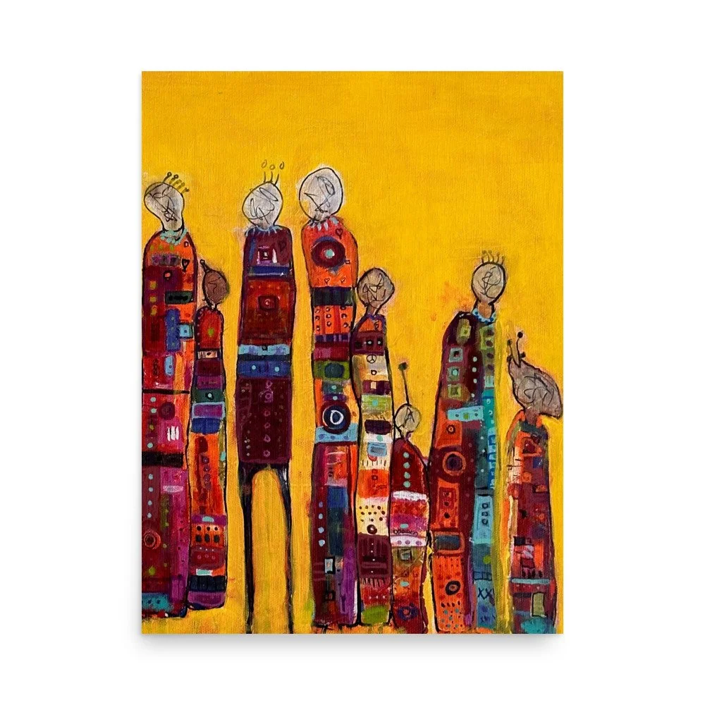 African Dance Tribe brings vibrant energy to life through elongated forms and bold textile-like details. Each figure tells a story, standing together in harmony and defiance.