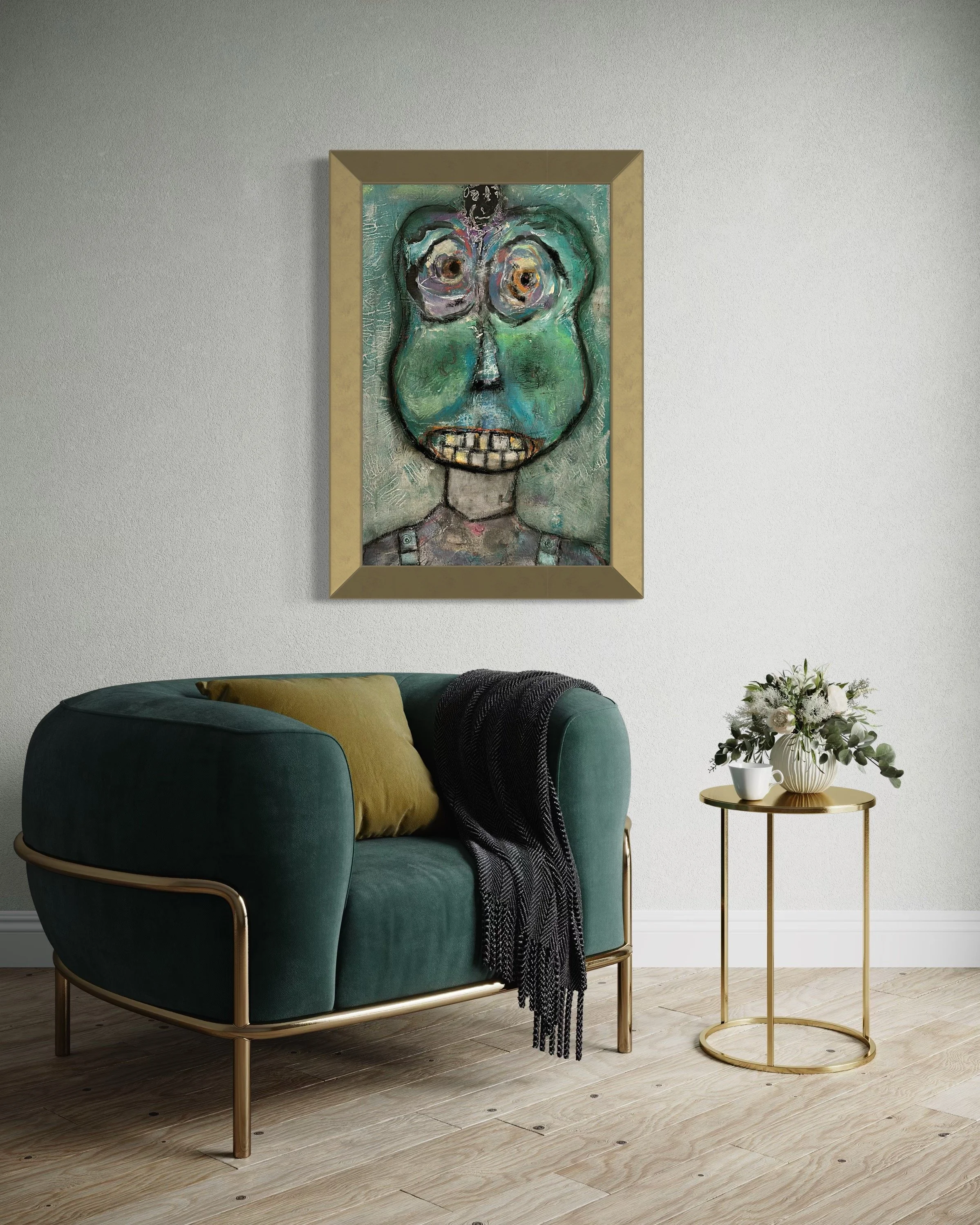 Wisdom is an owl-like guardian, gazes from the canvas, layered in warm reds and glowing with insight. Its presence is ancient, its silence knowing a protector of stories untold.